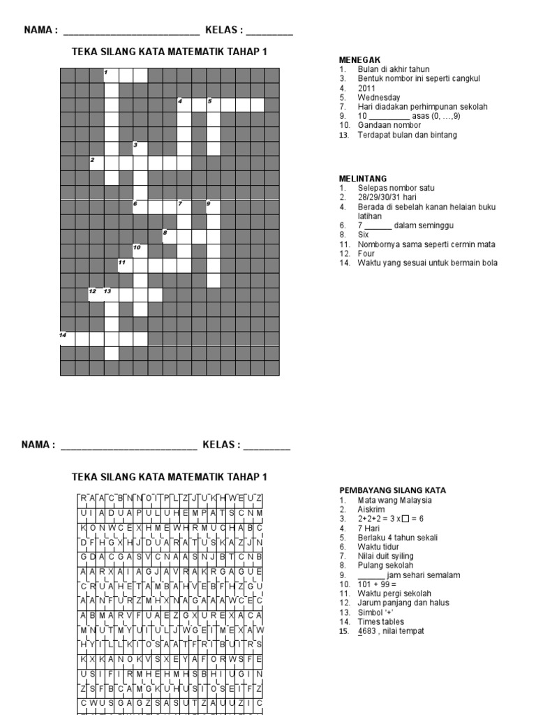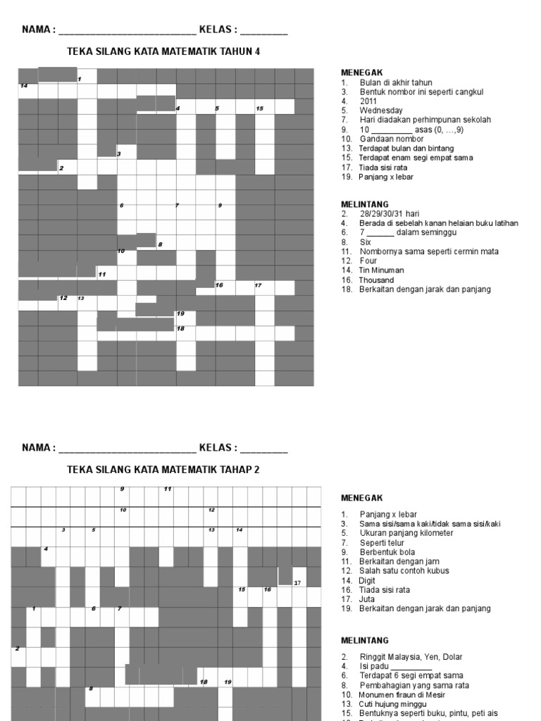 Sila right click untuk save image atau download file pdf di bawah post ya. Pelbagai teka silang kata matematik yang sangat penting untuk murid di ambil dari pemilik berikut. Baiklah dipendekkan cerita di bawah ialah perkongsian seperti yang dijanjikan iaitu Pelbagai Permainan Teka Silang Kata Bahasa Melayu Sekolah Menengah Yang Sangat Terhebat Untuk Para Murid Dapatkan.